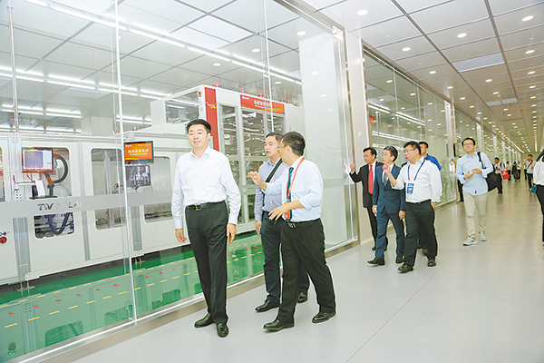 在通威太陽(yáng)能成都生產(chǎn)基地S2車間里,一支支特殊的機(jī)械臂有序揮舞,一輛輛無(wú)人駕駛的IGV智能小車往來(lái)穿梭,12條全封閉的智能制造高效太陽(yáng)能電池片自動(dòng)化生產(chǎn)線高速運(yùn)轉(zhuǎn),通威打造的“智能制造”樣本給蒞臨的嘉賓留下了深刻印象。尤其是得知通威太陽(yáng)能成都生產(chǎn)基地一期1000MW電池項(xiàng)目?jī)H用時(shí)7個(gè)月便建成投產(chǎn),而今年雙流二期2000MW電池項(xiàng)目建設(shè)在產(chǎn)能規(guī)模和工程量都翻了一倍的情況下,所用時(shí)間依然為7個(gè)月,大家紛紛表示震撼,贊賞通威創(chuàng)造了行業(yè)奇跡、全球紀(jì)錄。