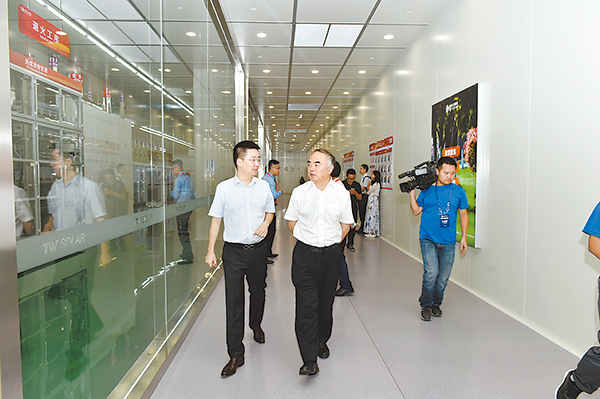 陽光電源股份董事長曹仁賢參觀通威太陽能全自動無人生產線