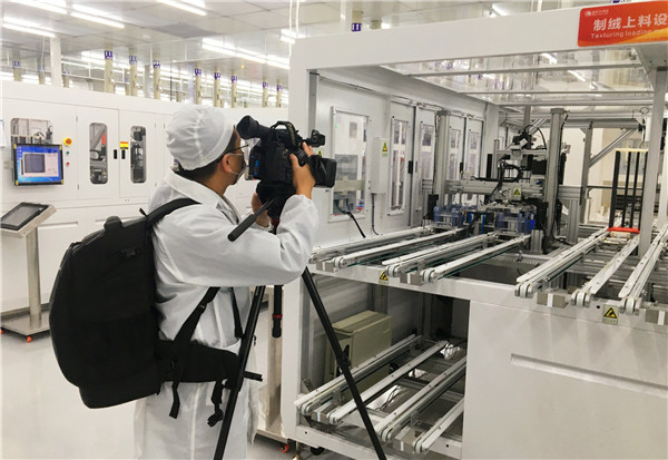央視財經頻道記者聚焦通威太陽能智能制造生產線