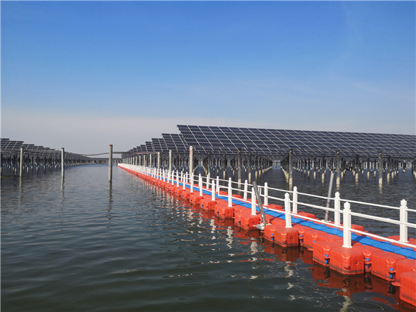 2018年底,通威泗洪“漁光一體”項(xiàng)目全額并網(wǎng),泗洪領(lǐng)跑者基地成為國(guó)家能源局“領(lǐng)跑者”項(xiàng)目里啟動(dòng)時(shí)間最短、建設(shè)速度最快的一個(gè)項(xiàng)目。項(xiàng)目被打造為集光伏先進(jìn)技術(shù)示范、特色漁業(yè)養(yǎng)殖相結(jié)合的示范基地,將對(duì)泗洪縣的漁業(yè)經(jīng)濟(jì)、社會(huì)環(huán)境發(fā)展起到積極的推動(dòng)作用。從陌生到參與,再到并網(wǎng)、收獲那一刻,經(jīng)歷了這一切變化的程佑河激動(dòng)無(wú)比。