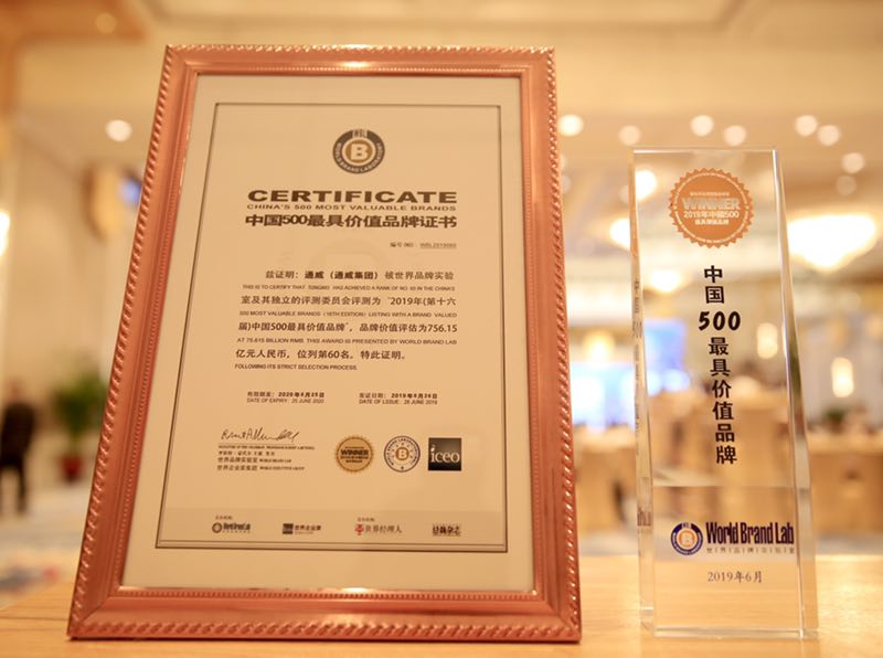 2019年6月26日,由世界品牌實驗室、《世界企業(yè)家》等共同主辦的2019年第十六屆世界品牌大會暨2019年(第十六屆)中國500最具價值品牌發(fā)布會在京隆重舉行。繼2018年以550.29億元突破550億元大關之后,2019年通威集團以756.15億元再創(chuàng)品牌價值新高,連續(xù)第16年入選中國品牌國家隊行列!從2004年的19億元,到2019年突破756億元,通威品牌價值在短短16年里增長了近40倍,展示了全國乃至全球綠色農(nóng)業(yè)和綠色能源龍頭企業(yè)和領軍品牌的雄厚實力。