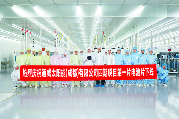 通威太陽(yáng)能(成都)有限公司四期項(xiàng)目第一片電池片下