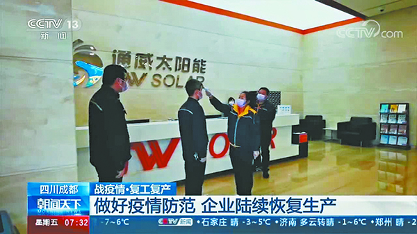 四川衛(wèi)視《四川新聞》報道通威科學(xué)防控、有序組織復(fù)工生產(chǎn)