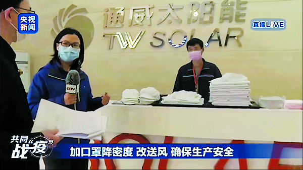 央視新聞《共同戰(zhàn)“疫” 》特別欄目記者走進通威太陽能成都基地
