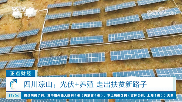 報道以《光伏+養(yǎng)殖,走出扶貧新路子》為題,介紹了喜德縣農(nóng)光牧光一體光伏扶貧電站的地理位置、占地規(guī)模、設備運行等情況,并表示,電站除正常發(fā)電外,還使光伏發(fā)電和養(yǎng)殖協(xié)同發(fā)展,達到了“企業(yè)發(fā)電有收益,群眾養(yǎng)殖有收益”的雙收益效果,走出了一條脫貧扶貧的新路子。5月,中國新聞社推出《探訪涼山“光伏+種養(yǎng)殖”產(chǎn)業(yè):光伏電站新模式的多元探索》,深度聚焦通威光伏扶貧新路徑。