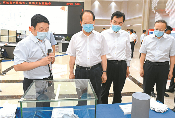 7月21日,內(nèi)蒙古自治區(qū)黨委書(shū)記、人大常委會(huì)主任石泰峰蒞臨內(nèi)蒙古通威調(diào)研,自治區(qū)黨委常委、秘書(shū)長(zhǎng)張韶春,自治區(qū)人大常委會(huì)副主任、包頭市委書(shū)記張?jiān)褐遥灾螀^(qū)黨委副秘書(shū)長(zhǎng)、政策研究室主任孟慶維,自治區(qū)發(fā)改委主任龔明珠,自治區(qū)工信廳廳長(zhǎng)李仲開(kāi)陪同調(diào)研,通威股份董事、永祥股份董事長(zhǎng)兼總經(jīng)理段雍,永祥股份副總經(jīng)理兼內(nèi)蒙古通威總經(jīng)理袁中華熱情接待。