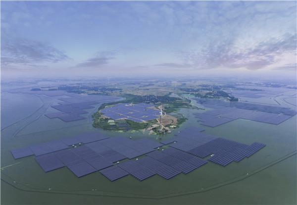 值得一提的是,2014年1月,通威成立研究小組,研究如何讓漁、光共生,并提出了“漁光一體”的綠色構想。2015年12月,通威第一個真正意義上的“漁光一體”項目——通威江蘇如東“漁光一體”項目正式實現并網發電,全球首創的“漁光一體”綠色創想從藍圖變為現實?!皾O光一體”創新發展模式,一方面利用漁業養殖水面,解決了光伏電站規?;瘧盟璧目臻g資源;另一方面引導水產養殖集約化、智能化、高效化發展,為水產養殖行業水污染、綠色養殖問題提供了創新解決方案,書寫推動綠水青山建設的生動實踐。