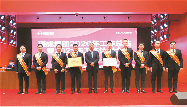會上同時還頒發(fā)了“2020通威股份年度新銳獎”、“股份優(yōu)秀分子公司總經(jīng)理”、“股份總部優(yōu)秀部門”、“股份優(yōu)秀片區(qū)總經(jīng)理”、“股份效益貢獻(xiàn)獎”、“股份銷量突破獎”、“2020執(zhí)行力十佳標(biāo)桿公司”、“2020通威年度英雄團(tuán)隊”等獎項。