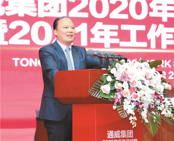 大會開幕式由集團(tuán)副總裁黃其剛主持。禚玉嬌總裁首先作2020年度集團(tuán)工作總結(jié)及2021年經(jīng)營計劃,郭異忠總裁作2020年度通威股份工作總結(jié),謝毅董事長作2021年度通威股份工作計劃。