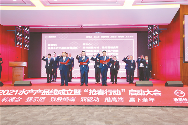 鷹擊長(zhǎng)空,魚(yú)翔淺底。2月18日開(kāi)工以來(lái),遵照劉漢元主席“聚焦聚勢(shì)、揚(yáng)長(zhǎng)砍短、執(zhí)行到位、高效經(jīng)營(yíng)”的指示,通威股份召開(kāi)水產(chǎn)產(chǎn)品線成立暨搶春行動(dòng)啟動(dòng)大會(huì),三大產(chǎn)品線全面啟動(dòng)。同時(shí)各戰(zhàn)區(qū)、各分子公司相繼召開(kāi)迎戰(zhàn)2021誓師大會(huì),向2021年全新市場(chǎng)目標(biāo)發(fā)起沖刺。