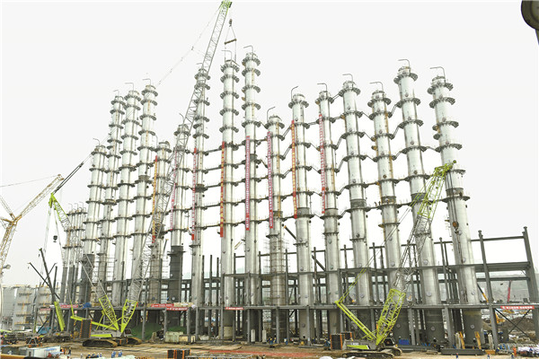 永祥新能源二期項目精餾主塔全部吊裝就位