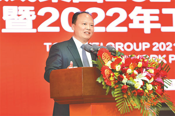 劉漢元主席在講話時指出,過去的一年,全世界各行各業都不容易,在全體通威人的共同努力下,我們依然取得了驕人的業績:永祥在2021年一路拼搏,三大基地項目建設速度快、成本控制優,通過不斷的技術創新,實現了產品品質行業領先。永祥新能源一期項目產品全部滿足國家標準的電子三級的產品質量標準,二期項目產品全部達到電子二級水平,部分指標優于國家電子工業標準的電子一級質量標準。根據永祥現有產能,大約兩個月的產量就可滿足全世界集成電路芯片生產的高純晶硅的需要,所以這個發展速度比我們想象的還快,品質比我們想象的還好,值得大家驕傲和自豪;通威太陽能頂住行業周期壓力,內部組織高效有力,持續強化技術研發,研發更加方向明確、重點突出,讓公司成為電池環節唯一一個保持連續盈利的公司;農牧板塊的標準化工作在2021年取得了長足的進步,很多飼料老工廠煥然一新,公司的廠容廠貌、員工的精神風貌、整體的工作環境發生了翻天覆地的變化,讓我們再一次走在了飼料行業的前列。