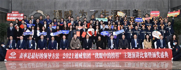 劉漢元主席為2021通威集團“我眼中的榜樣”演講比賽一等獎獲得者頒獎