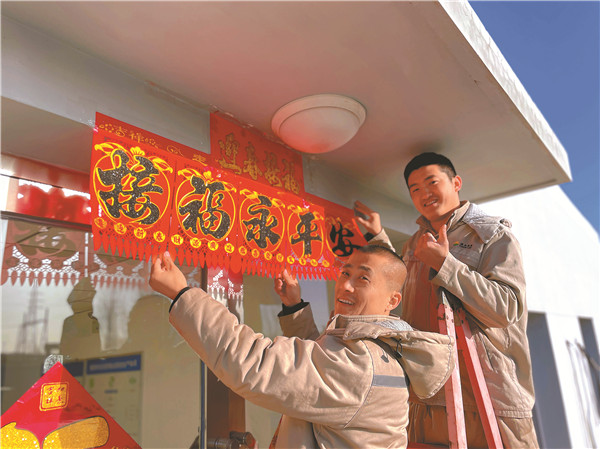 通威朝陽光伏電站運維工作員工貼春聯(lián)迎新春