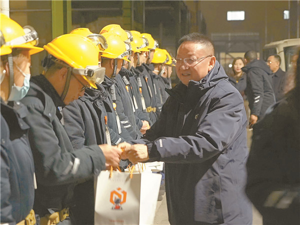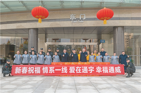 同日,通威集團副總裁黃其剛率通宇物業(yè)總經(jīng)辦團隊來到通威國際中心,親切慰問節(jié)日期間堅守崗位的秩序部、環(huán)境部、工程部等三十余名一線員工。黃總特別轉(zhuǎn)達了劉漢元主席對大家的暖心問候,并發(fā)放了新春禮包,向堅守崗位的員工致以新春祝福和節(jié)日問候。期間,黃總查看了通威國際中心值守情況,仔細詢問了值守人員的崗位工作、食宿安排等情況,對大家井然有序地推進值班工作給予了充分肯定,并鼓勵大家值守期間,加強安全排查和設(shè)施維護,確保平安過節(jié)。