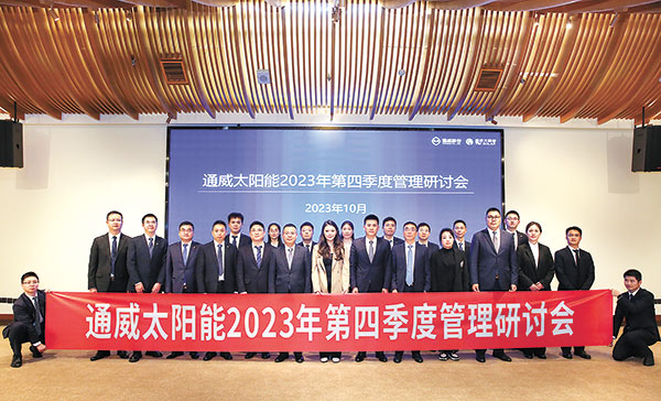 10月13日,通威太陽能成功舉行2023年四季度管理研討會。通威股份董事長、CEO劉舒琪,通威太陽能總經(jīng)理周華等出席會議。劉舒琪董事長強(qiáng)調(diào),2024年公司將面臨硅料、硅片、電池產(chǎn)能過剩的嚴(yán)峻市場挑戰(zhàn),希望電池端在今年第四季度及2024年工作中,進(jìn)一步加強(qiáng)內(nèi)部溝通與協(xié)作,在降本增效的同時,堅守質(zhì)量口碑,及時服務(wù)客戶,提升品牌形象,并持續(xù)保持與行業(yè)的動態(tài)對標(biāo),在產(chǎn)品轉(zhuǎn)型同時重點(diǎn)關(guān)注效率提升。她鼓勵團(tuán)隊繼續(xù)發(fā)揚(yáng)不斷追求卓越的奮斗精神,堅定信心,沉著應(yīng)對市場挑戰(zhàn),繼續(xù)保持行業(yè)領(lǐng)先的競爭力。