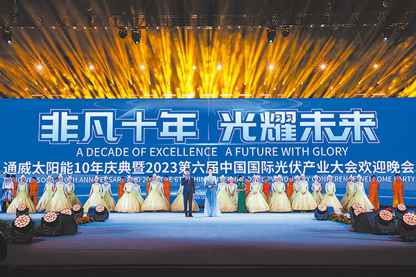 2023年,通威太陽能迎來十年華誕,從無到有、從小到大,公司一路跨越發展,十年碩果累累。11月13日,通威太陽能10年慶典隆重舉行。重要領導、專家學者、企業代表,通威新能源上中下游產業鏈全球合作伙伴、員工代表匯聚一堂,當天晚會現場觀看人數超過5000人。海內外6萬多名通威員工同步線上視頻觀看盛典,共慶這一榮耀時刻。