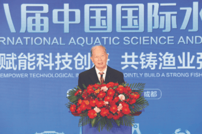 大會現場,國務院參事、農業農村部原副部長于康震,農業農村部原總畜牧師張天佐,十一屆全國政協常委、中國科學院院士、北京大學生命科學學院教授朱作言,中國科學院院士、北京大學生命科學學院教授趙進東,中國工程院院士、中國海洋大學水產學院名譽院長麥康森,中國科學院院士、發展中國家科學院院士、中國科學院水生生物研究所研究員桂建芳,農業農村部漁業漁政管理局原局長、中國漁業協會會長趙興武,四川省農業農村廳黨組書記、廳長蔣剛,通威股份董事長、CEO劉舒琪,全國水產技術推廣總站站長、中國水產學會秘書長崔利鋒,中國飼料工業協會常務副會長兼秘書長王宗禮,中國水產科學研究院原副院長、中國漁船漁機漁具行業協會會長李杰人,中國水產流通與加工協會會長崔和,中國水產科學研究院副院長王玉梅,巴基斯坦駐成都總領事館代總領事胡楠,以色列駐成都總領事館副總領事施賽玉,教育部教學指導委員會委員、四川農業大學學術委員會主任周小秋,國家大宗淡水魚產業技術體系首席科學家戈賢平,國家蝦蟹產業技術體系首席科學家何建國,國家特色淡水魚產業技術體系首席科學家楊弘,四川省水產局局長何強,四川省水產局副局長羅本彬,通威股份農牧總裁、通威農發總經理郭異忠,通威集團黨委書記、副總裁黃其剛,中國水產學會副理事長、通威股份副總裁張璐,漁美康集團總裁劉紹春,歐洲自然科學院院士、上海芯生機農業董事長鄒國忠等重磅嘉賓出席大會。