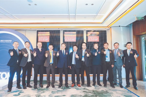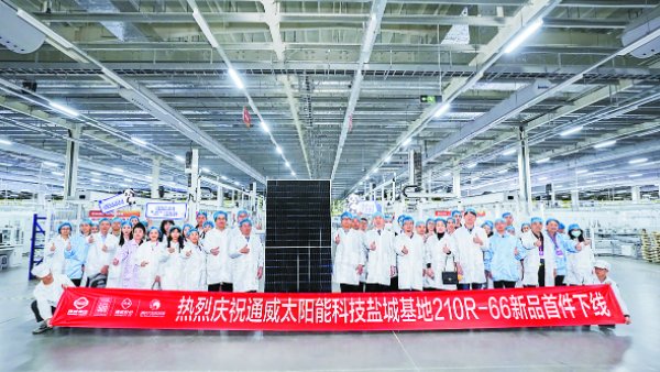 在重磅嘉賓、參會(huì)媒體的見證下,通威太陽能科技鹽城基地成功下線首件TNC-G12R-66版型組件。這是繼南通基地TNC-G12R-48版型組件下線后,通威正式實(shí)現(xiàn)了TNC-G12R大矩形組件的全面供應(yīng)。