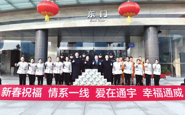 2月12日,農(nóng)歷大年初三,通威集團(tuán)黨委書記、副總裁黃其剛前往通威國(guó)際中心,親切慰問春節(jié)假期堅(jiān)守崗位的一線值班員工。黃總特別轉(zhuǎn)達(dá)了劉漢元主席對(duì)大家的暖心問候,并發(fā)放了新春禮包,向堅(jiān)守崗位的員工致以新春祝福和節(jié)日問候。期間,黃總逐一查看了秩序部、環(huán)境部、工程部等值班崗位,每到一處都關(guān)心詢問了值班人員的崗位工作、食宿安排等情況。對(duì)大家春節(jié)期間堅(jiān)守崗位,井然有序地推進(jìn)值班工作給予了充分肯定,感謝大家的辛勤付出,并鼓勵(lì)大家值守期間,加強(qiáng)安全排查和設(shè)施維護(hù),確保平安過節(jié)。