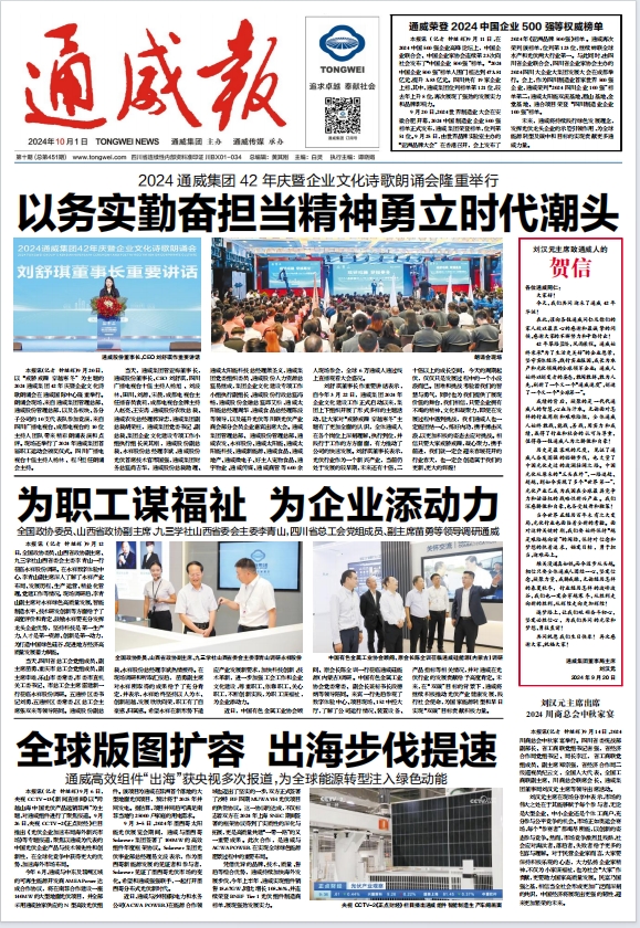 - 2024通威集團(tuán)42年慶暨企業(yè)文化詩歌朗誦會(huì)隆重舉行 以務(wù)實(shí)勤奮擔(dān)當(dāng)精神勇立時(shí)代潮頭
