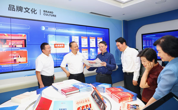 郭強常委、趙俊民常委閱讀《通威報》了解通威品牌文化建設