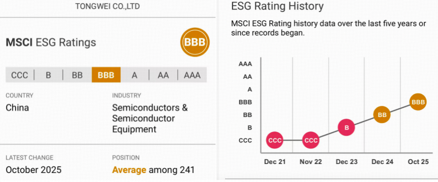 連續(xù)三年穩(wěn)步進階:通威MSCI ESG評級躍升至BBB