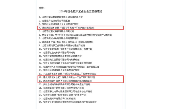 通威太陽能獲評“年度合肥市工業企業五星級班組”