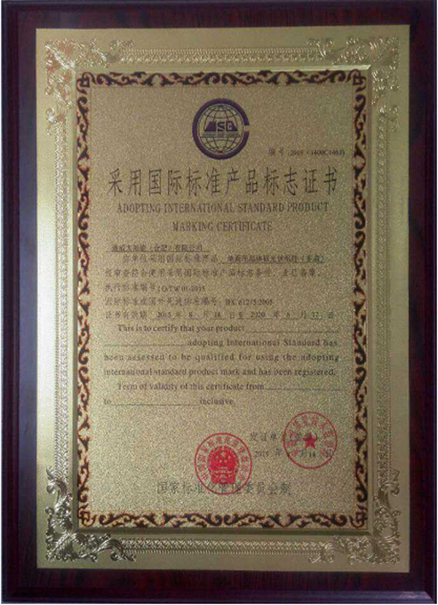 通威太陽(yáng)能(合肥)公司榮獲《采用國(guó)際標(biāo)準(zhǔn)產(chǎn)品標(biāo)志證書》