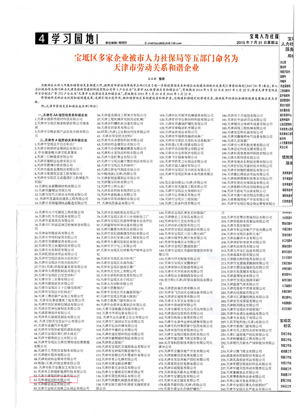 天津通威榮獲“A級勞動關系和諧企業”稱號