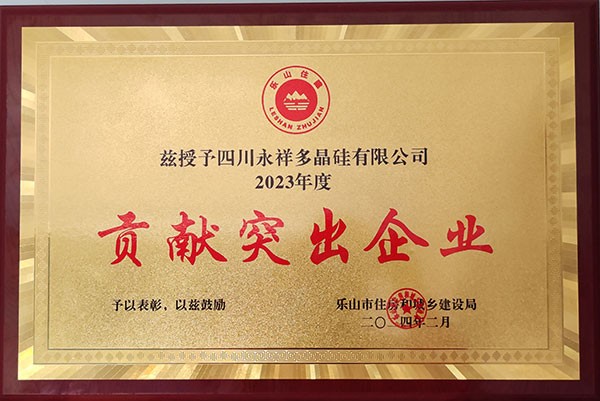 永祥新材料榮獲樂(lè)山市2023年度貢獻(xiàn)突出企業(yè)