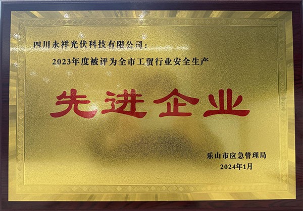 永祥光伏科技獲評2023年度樂山市工貿(mào)行業(yè)安全生產(chǎn)先進企業(yè)