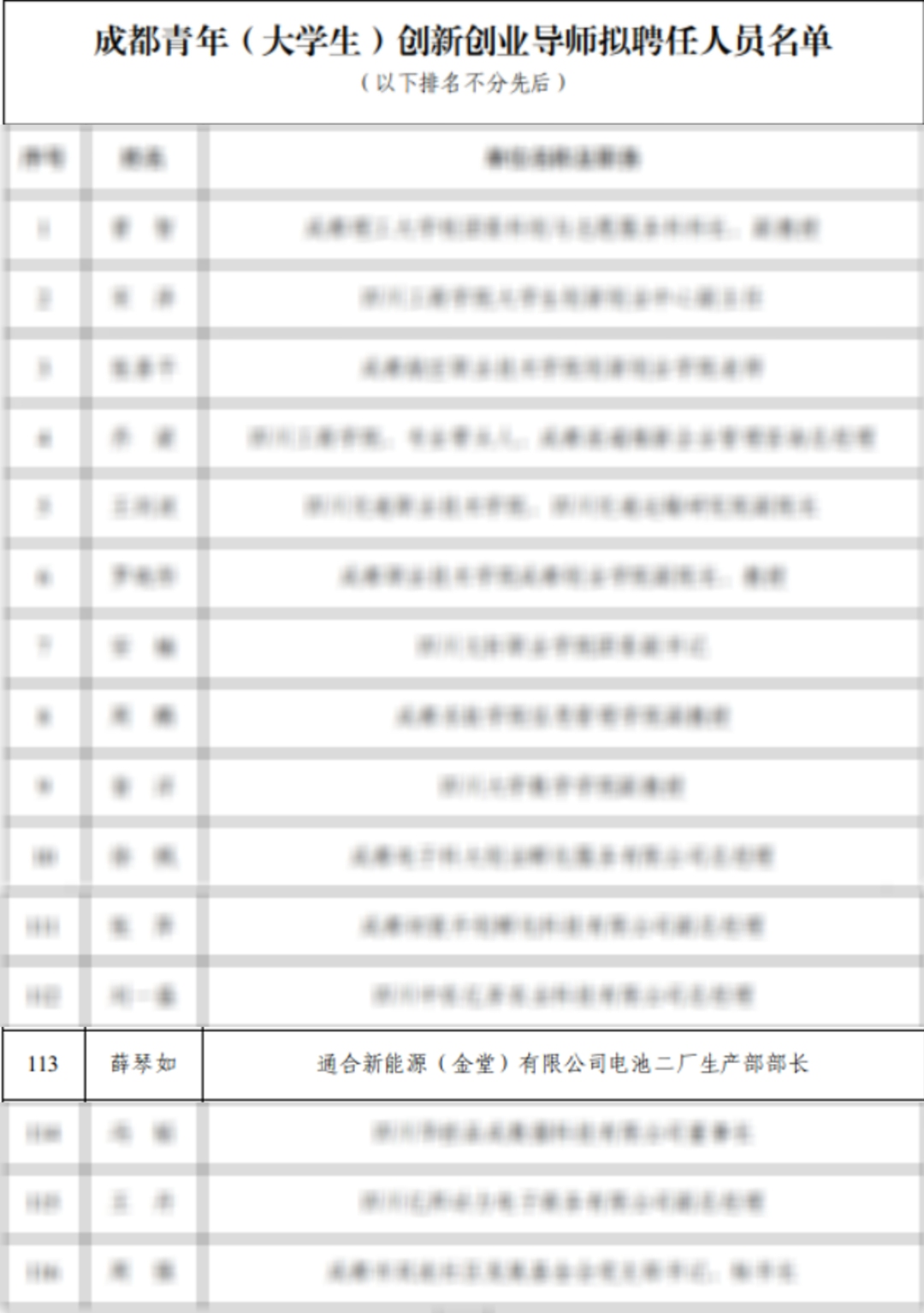 通合新能源(金堂)有限公司工會副主席薛琴如獲聘2025 年成都青年(大學(xué)生)創(chuàng)新創(chuàng)業(yè)導(dǎo)師