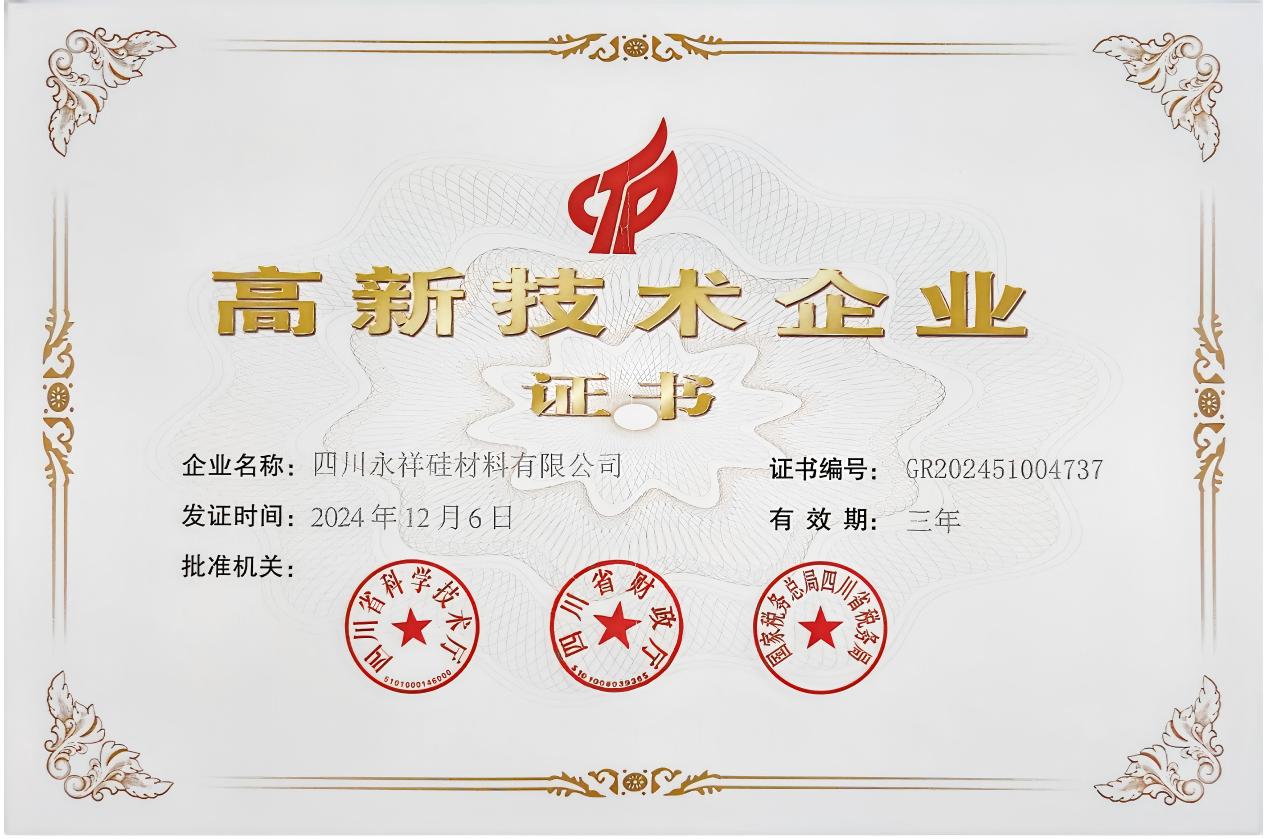 永祥硅材料順利通過(guò)2024年國(guó)家“高新技術(shù)企業(yè)”認(rèn)定!