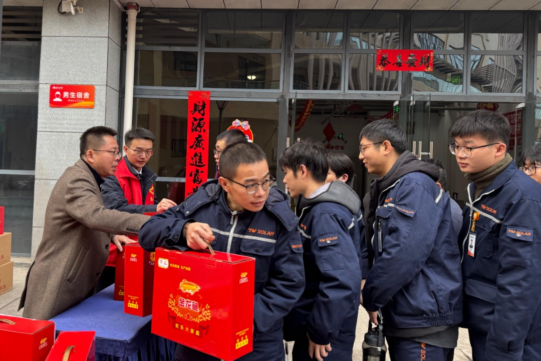 金堂縣總工會黨組書記、副主席岳培勇一行到訪通威太陽能(金堂)有限公司開展新春慰問活動