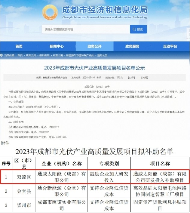 通威太陽能(成都)有限公司入圍成都市2023年光伏產業高質量發展項目名單