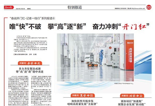 《眉山日報》聚焦通威太陽能眉山基地高質量發展、奮力沖刺“開門紅”