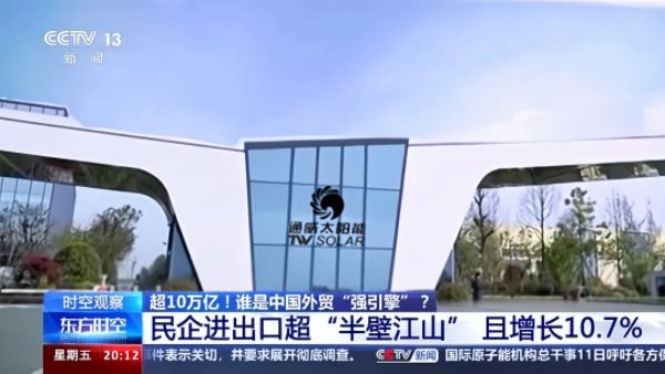光伏助力中國外貿創新高,央視《新聞聯播》《東方時空》聚焦通威創新硬實力!