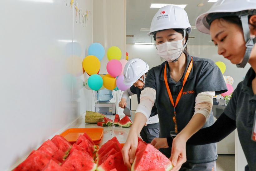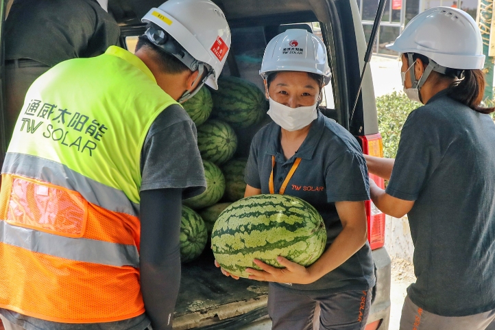 當前,通威太陽能(成都)有限公司五期項目建設如火如荼。為向堅守在一線的建設者們表達敬意,送去關懷,8月7日,成都公司工會與行政部聯(lián)合開展五期專項慰問活動。