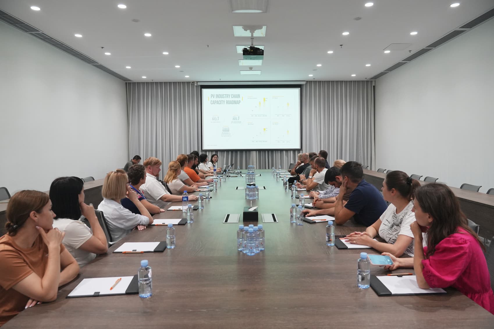 7月23日,摩爾多瓦政府辦公廳、能源部、國家可持續(xù)能源中心、電力公司等組成的新能源建設研修班一行30余人蒞臨通威太陽能(金堂)有限公司參觀交流,金堂公司人力資源部、質(zhì)量部、行政部相關(guān)負責人陪同接待。