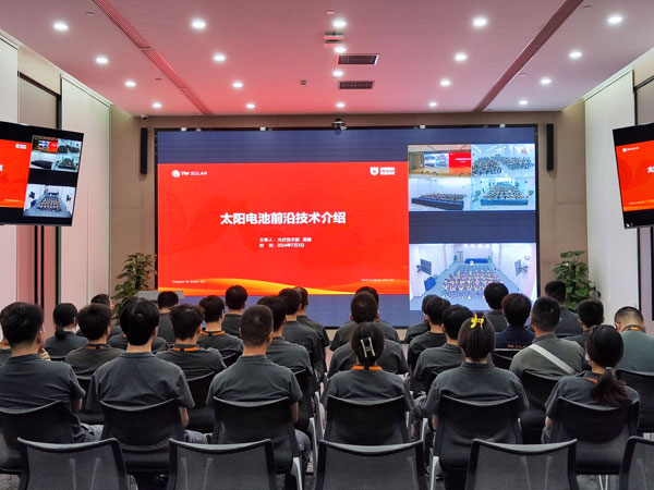在全球化競爭日益激烈的今天,技術(shù)創(chuàng)新已成為企業(yè)持續(xù)發(fā)展的核心驅(qū)動力,通威太陽能作為光伏行業(yè)的領(lǐng)軍企業(yè),始終將技術(shù)人才培養(yǎng)視為公司戰(zhàn)略的重要組成部分。7月2日,通威太陽能成功開展以“太陽電池前沿技術(shù)介紹”為主題的第六期智學講堂主題公開課,本次課程特邀成都公司鈣鈦礦項目組部長龍巍擔任主講嘉賓,各分公司400余名技術(shù)人員參與。