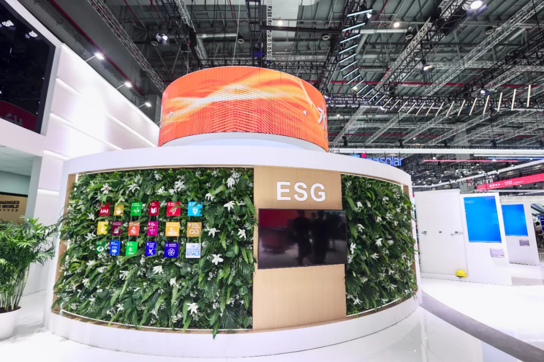 綠色一直是通威發展的底色,通威以“Together to Win(共贏)”為可持續發展使命,提出了“build together(共建)”“govern together(共治)”“ share together(共享)”的核心理念,堅持以ESG領域的持續探索助力可持續發展。在此次通威展臺整體構建上,綠色低碳理念貫穿其中,將環保、可持續發展和技術創新相結合,特別設置由綠植構成的ESG主題打卡墻,將通威可持續發展理念傳遞給更多人。