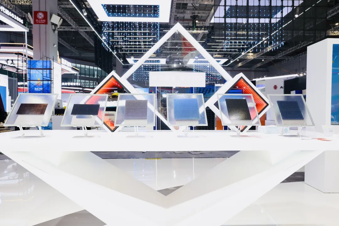 此外,今年通威展臺還設置了創意球幕,動感畫面通過球幕逐一呈現,帶來沉浸式視聽體驗。在產品展示上,立體展陳的排布方式讓整體布局更合理、區域劃分更清晰,展示通威光伏新能源產業鏈產品。