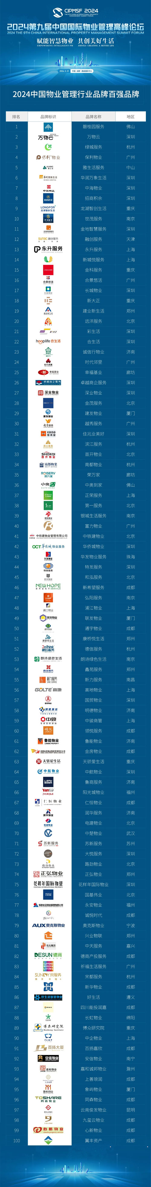 “2024中國物業(yè)管理行業(yè)百強(qiáng)品牌”名單