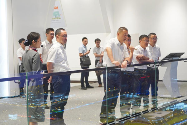 王岳副市長(zhǎng)一行參觀展廳沙盤(pán)區(qū)域
