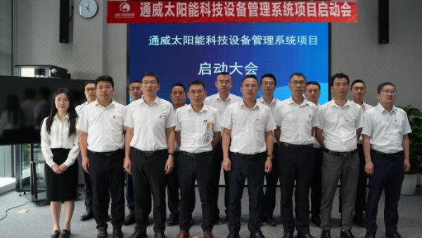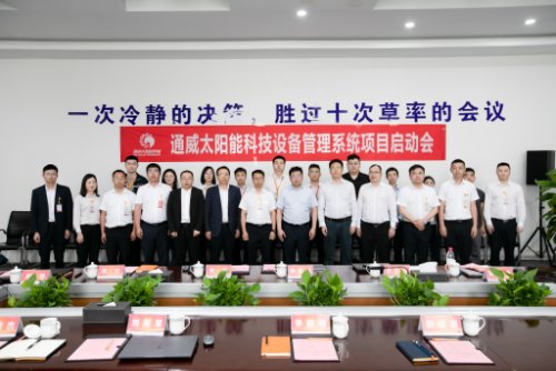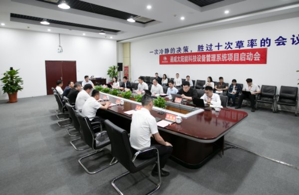 4月28日,通威太陽能科技設備管理系統項目啟動會在合肥、鹽城、金堂、南通四大基地成功召開。通威股份總裁助理、通威太陽能科技有限公司總經理蕭圣義,通威股份信息總監周勇,通威太陽能(鹽城)有限公司副總經理翟緒錦,通威太陽能副總經理宋梟,通威太陽能(四川)有限公司總經理助理朱劍誠,通威太陽能(合肥)有限公司總經理助理李冬生,通威太陽能科技總經理助理謝俊杰,金蝶中國助理總裁郭旭光,金蝶四川省公司總經理侯建斌及金蝶實施顧問出席會議。公司各部門負責人及員工近110人參會。