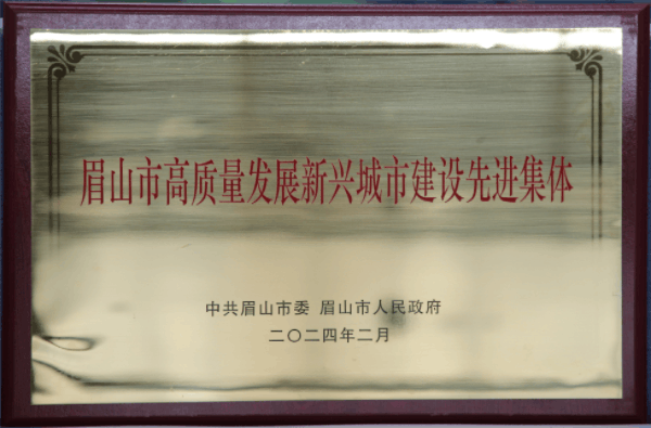 “眉山市高質量發展新興城市建設先進集體”榮譽獎牌