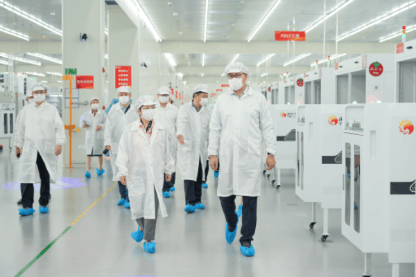 參觀調(diào)研期間,顧總向調(diào)研組一行詳細(xì)介紹了彭山公司的發(fā)展歷程、產(chǎn)能規(guī)模等情況。隨后,調(diào)研組一行走進(jìn)彭山公司的智能制造車間,就制造流程、生產(chǎn)工藝、技術(shù)產(chǎn)品及光伏行業(yè)狀況和通威太陽能發(fā)展情況進(jìn)行詳細(xì)了解。