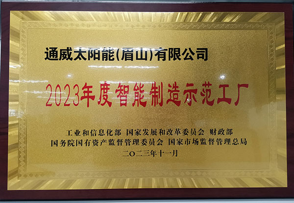 3月27日,中共眉山市委辦公室聯合眉山市人民政府辦公室組織召開“眉山市推進新型工業化暨制造業智能化改造數字化轉型工作會議”,通威太陽能(眉山)有限公司受邀參會并獲授“2023年度智能制造示范工廠”稱號、“2023年眉山市制造業企業規模10強”稱號。
