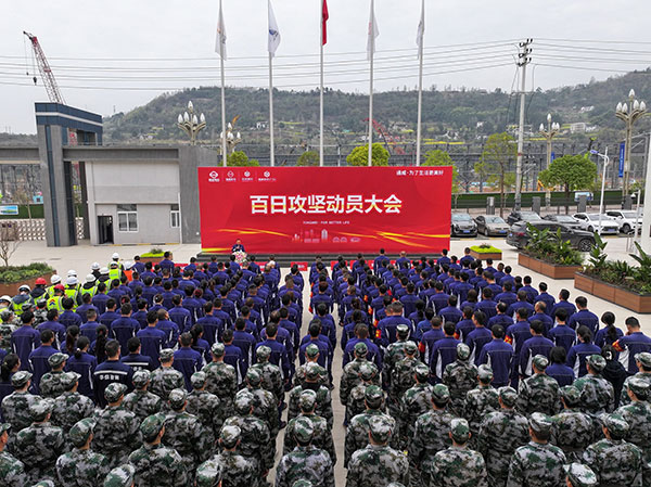 3月20日,廣元通威綠材舉行百日攻堅動員大會,項目指揮長陳雪剛、指揮長助理邱正剛、王躍,副總工程師詹世偉,股份級專家顧問張慧及公司全體員工出席,邀請川冶院、施工單位、監理單位及審計代表出席大會。